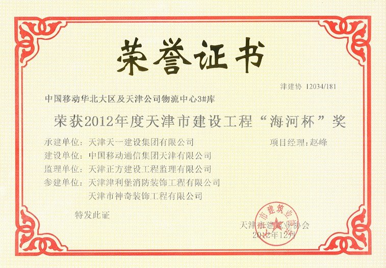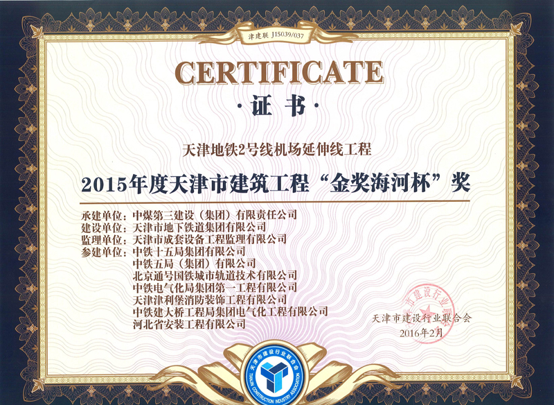 公司承接了包括寫字樓、綜合樓、酒店、商場、金融保險、醫療教育、飛機制造、軌道交通、工業企業等一大批具有社會影響力的工程項目,如:天津津匯廣場、天津泰達現代服務產業區G2地塊(泰達MSD-C區)、濱海文化商務中心、天津高銀117大廈、天津濱海喜來登酒店、天津天河城購物中心、天津市第二兒童醫院、空客A320、A330項目、新一代運載火箭產業化基地項目、津濱快速輕軌工程、天津地鐵一、二、六號線工程、天津濱海國際機場二期擴建工程項目機場工程T2航站樓、北京新機場停車樓及綜合服務樓、天津平安泰達金融中心以及天津一汽豐田汽車有限公司新能源工廠建設消防工程等項目,積累了豐富的施工及管理經驗,多次贏得業主的認可和表彰,并有7項參建工程獲得天津市建設工程“海河杯”獎、有6項參建工程獲得天津市建設工程“金獎海河杯”獎、有3項參建工程獲得“國家優質工程獎”、有15項參建工程獲得中國建設工程“魯班獎”、有2項參建工程獲得“中國安裝之星”優質獎、1項參建工程獲得北京市建筑長城杯工程金質獎。同時被中國消防協會評定為AAA信用等級企業。公司以卓越的工程品質和全方位的服務得到了社會各界的好評,在同行業中享有較高的信譽。