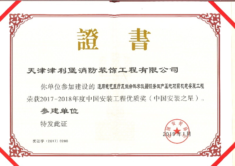 通用電氣醫療及生命科學儀器設備生產基地項目機電安裝工程榮獲“2017-2018年度中國安裝工程優質獎(中國安裝之星)”榮譽稱號